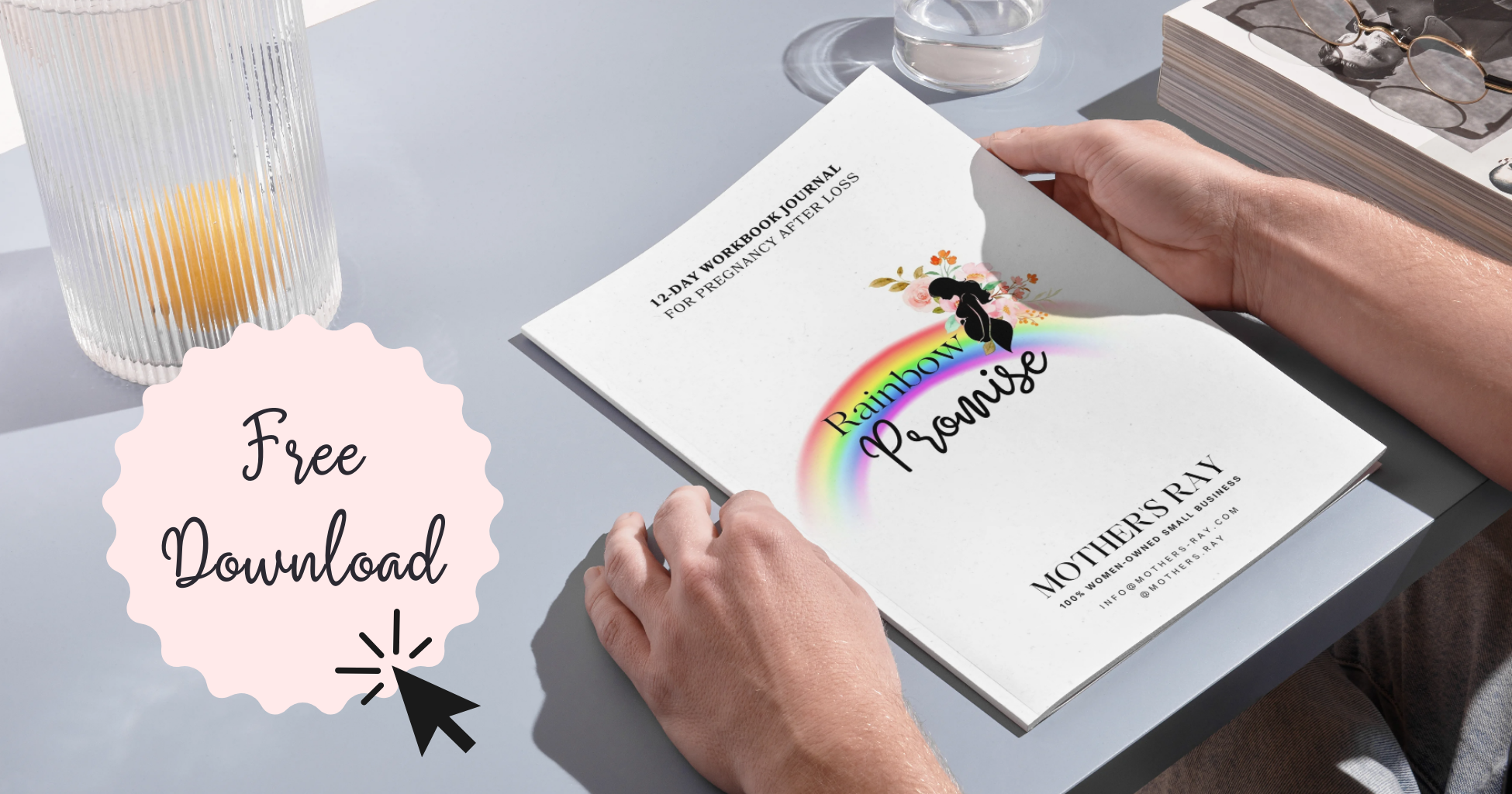 To support you during this tender season, I created a free guided Rainbow Baby journaling workbook — soft, gentle, and created with love for women navigating pregnancy after loss.
